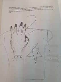 We were now asked to bring in something that has sentimental meaning to us, (of course, I bought nail polish) and put it into our had. Then we had to find a 'pose', and get a clear sheet of paper on which we traced our hand with white board marker. Soon after, we applied the clear sheet onto a new peice of paper and traced that. Then we begun to add the detail and shade.